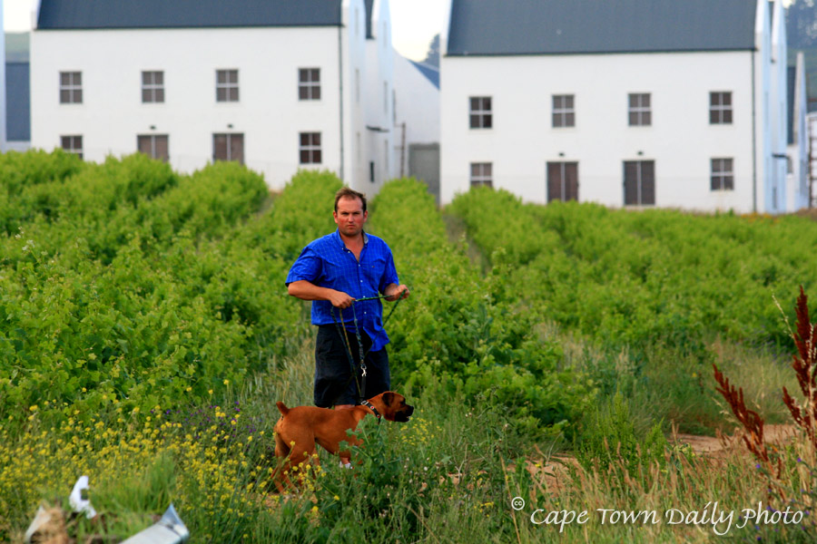 It must be wonderfully relaxing to take a leisurely stroll through the vines - although, by the way half of this poor fellow's shirt is pulled out and considering his flushed cheeks, I'd bet that his "best friend" took him for rather a brisk walk.