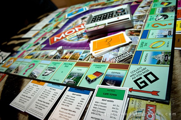 Now to the subject of today's photo... remember way back in August 2008 when it was announced that Cape Town had secured enough votes to appear in 3rd spot on the board of the new Monopoly World Version? Well, we finally got to play the new version of Monopoly on Saturday evening, and it was loads of fun, even though I didn't win. ;-) We thought this would be an appropriate photo for the official launch of Cape Town Daily Photo version 2, since we're Passing Go and all (I'm still hunting for the $2M we're supposed to collect, though). If you look carefully, you'll see the Cape Town property card in the front right of the shot.