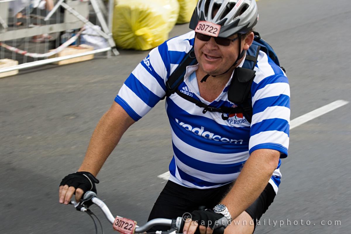 Given the look on this cyclist's face, you'd never guess that today's Cape Argus Pick 'n Pay Cycle Tour was one of the most challenging (possibly THE most challenging) races ever. Winds of 60 to 90km/hour, of which 70% were apparently headwinds, made race conditions incredibly difficult, and resulted in delayed start times for most groups, and longer race times for pretty much everyone.