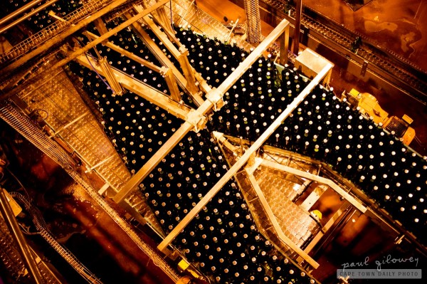 The cellars at SAB in Newlands are capable of holding over 21 million litres of beer (about 65 million bottles) at any given time! I'm guessing that the writer of that song sure was lucky not to have been standing in front of this conveyor belt!