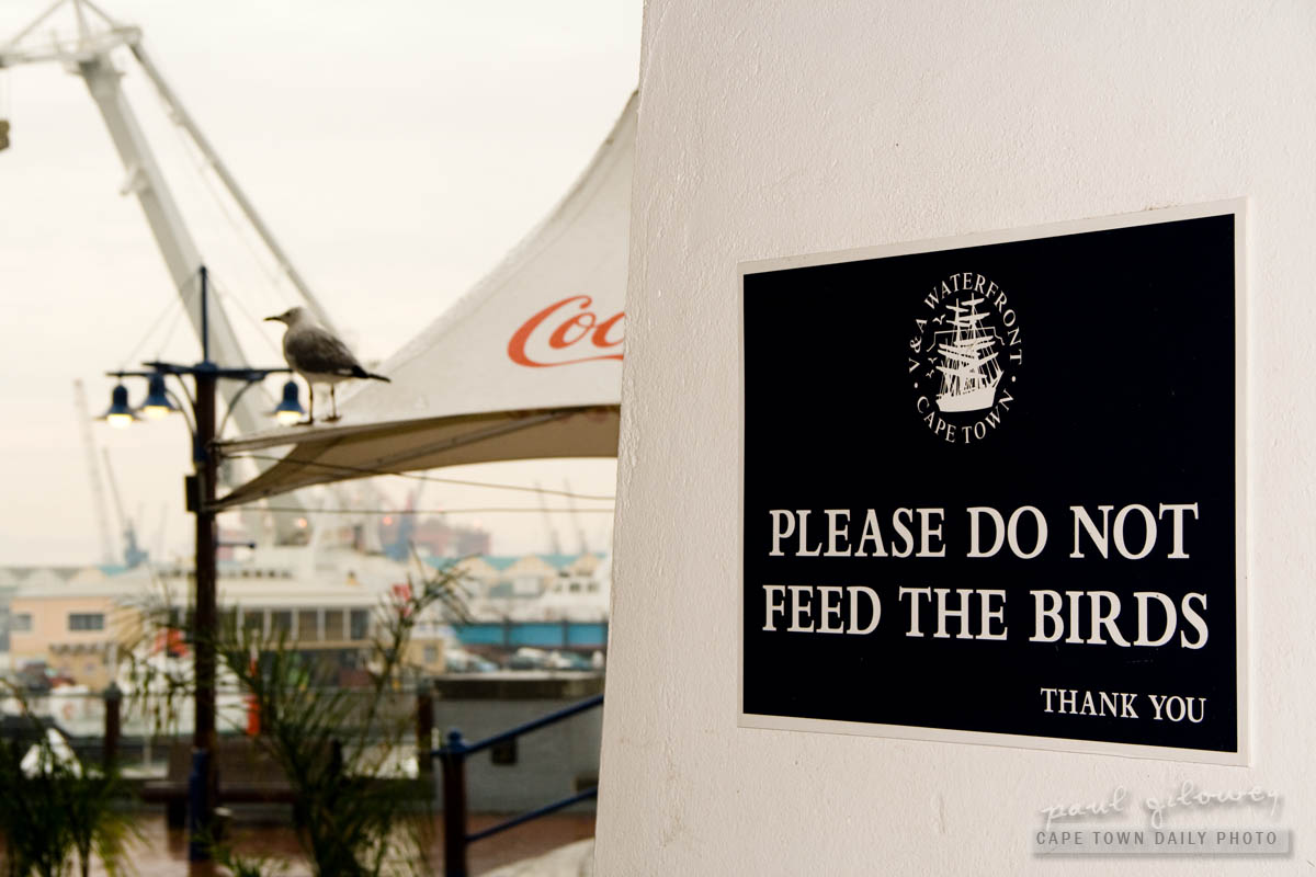 Do you remember the book or (as I do) the movie The Birds by Alfred Hitchcock? Do you think it's a co-incidence that this is called the Victoria and Alfred Waterfront? Neither do I. Don't feed the birds people! :D