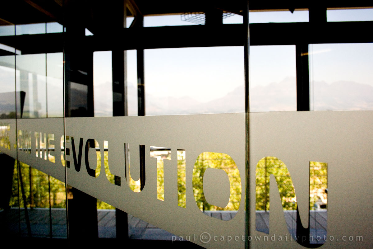 I mentioned in my previous post that we had the opportunity to visit two technology startup companies in Stellenbosch - the first being FireID, and the second being the larger MXit. I'm not sure if you can see it clearly from this photo, but the view from their offices is spectacular, seemingly the perfect view to stimulate creativity.