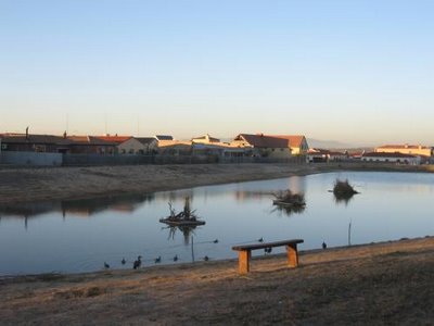 Last night we visited friends out in Uitzicht, which is a relatively new suburb out to the north of Cape Town. This is the view from their back garden - it's very peaceful, until the Egyptian geese start quacking. Actually, they don't quack so much as bark... There is something of a plague of Egyptian geese around Cape Town, and the possibility of culling has been mentioned once or twice. It doesn't seem like a very appealing idea, until you realise how the population has exploded in the last couple of years, and how they're chasing away other species of duck and waterfowl. To be honest, I'm just glad it's not my decision to make.