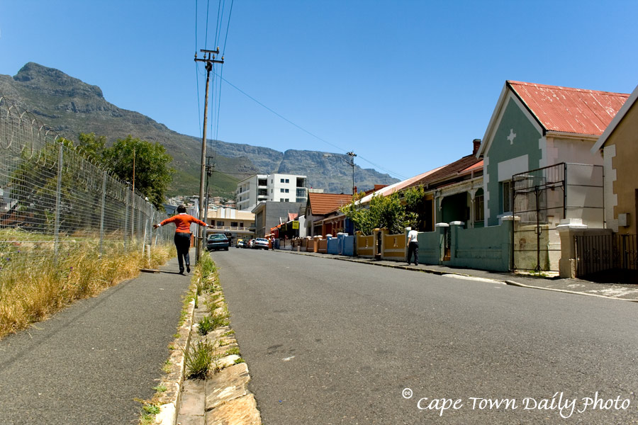 Woodstock, South Africa, is an old suburb of Cape Town on the slopes of Devil's Peak and currently an urban development zone with property owners enjoying tax benefits for upgrading buildings. This street hasn't been upgraded yet, but give it ten years and perhaps we'll see the face of Woodstock somewhat differently. See Woodstock's community website here.