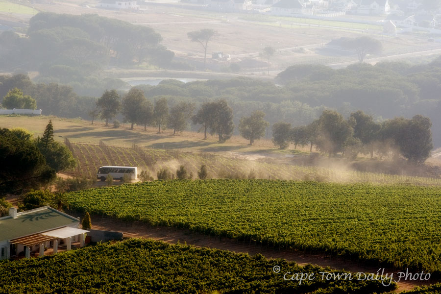 Huffing and puffing, we reached the top of the hill in what must have been 5 hours (actually only 15 minutes, but it seemed so much longer). The bus (presumably a tour bus) in this photo is seen leaving the hill down the gravel road with the "no entry, trespassers will be prosecuted" sign. Perhaps we should have ignored that sign. ;)