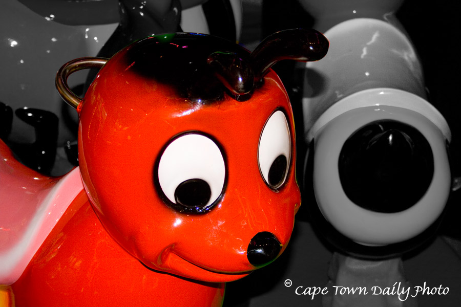 This little fellow is part of a mechanised children's ride we spotted at the Canal Walk shopping centre. I used to love these animal-shaped rides when I was a little girl, and would always beg my mother to give me coins so that I could make them go. If the truth be told, I still love stuff like this - but I've noticed that people give me odd looks if I climb onto one now, so I try to fight the urge. ;-)