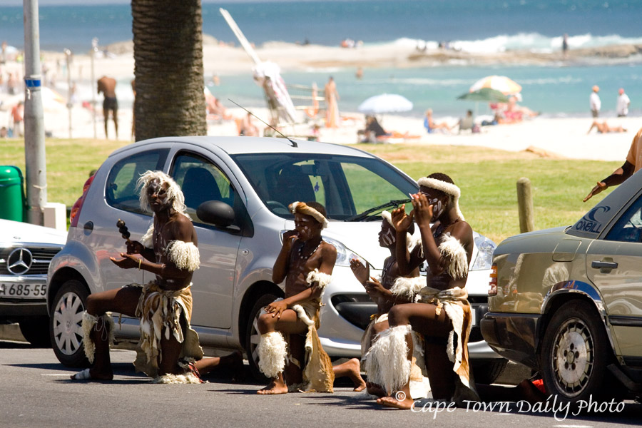 As we walked towards Victoria Road we heard the beating of drums long before we saw these four guys performing a traditional dance for the patrons of the many trendy restaurants that line Camps Bay beach.