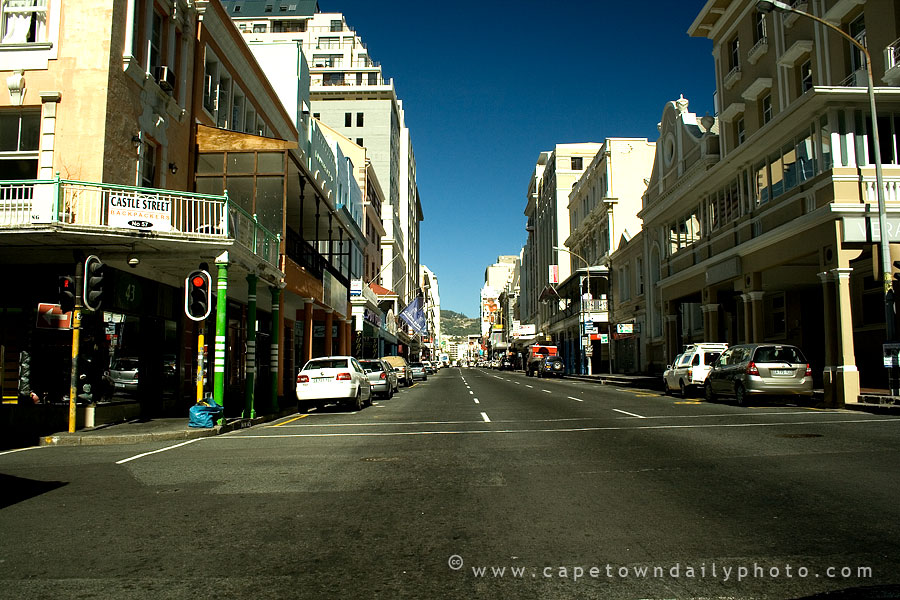If you look carefully at the parked cars in the photograph, you might notice that it's a one-way street; Long Street stretches for more than 20 city blocks (3.8km), and is one of the oldest roads in Cape Town. If you're interested, read more about the residents and landmarks of Long Street.