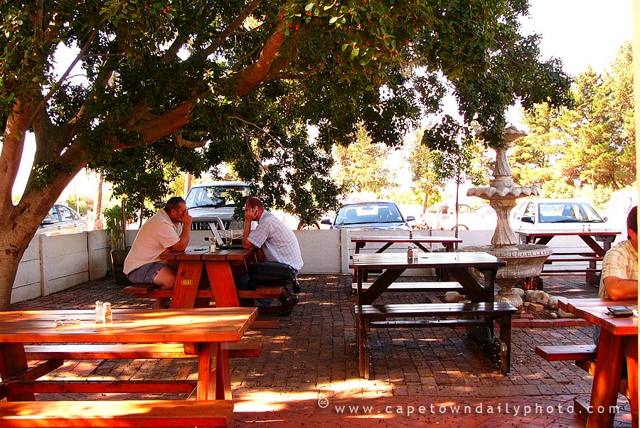 Apart from this outside section, Krige's has a traditional bar on the inside (with a cosy fire-place for those cold winter days) and a slightly more formal (yet casual) restaurant attached to its side. The bar is known for its easy-going and relaxed feel and the restaurant for its traditional South African meals and pretty decent hand-pressed pure-beef-patty burgers.