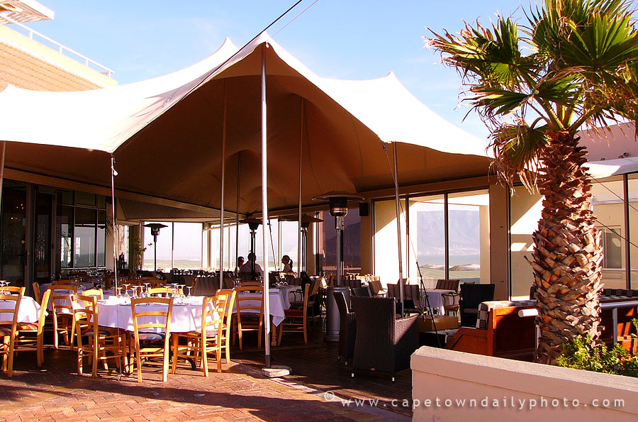 It was a fairly windy afternoon, so there were plenty of kite-surfers for us to watch out in the bay; and the sky was absolutely clear, giving us a perfect view of Table Mountain from our table.