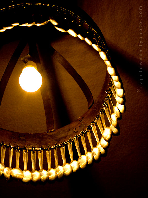 Isn't this lampshade just awesome? Okay, perhaps not for your home, but it does fit in with Yum's decor really well. It would appear as though someone spent quite some time drilling little holes on the many teaspoons and hanging them on little pieces of wire attached to the lampshade.