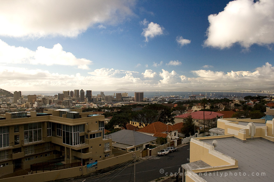 Cape Town sprawls out before this Vredehoek flat almost as far as the eye can see. From this vantage point one can keep a keen eye on and almost feel the heartbeat of South Africa's Mother City. ("Mother City" is a colloquial nickname for Cape Town.)