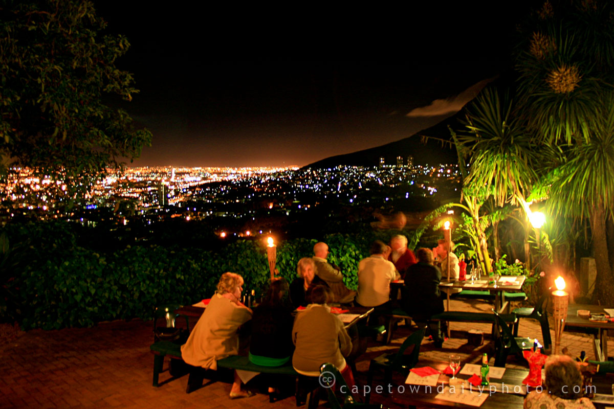 We had the party at my aunt and uncle's house on Kloof Nek, one of the most scenic parts of Cape Town. Although the sun tends to set rather early behind Table Mountain, they do have some of the best weather and the most exquisite sunrises and sunsets in all of Cape Town. In the photo you can see the lights of the City Bowl far below and Devil's Peak rising to the right. This area really does have a unique perspective on the city.