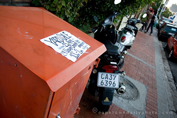 I meant to post this photo when I took it (on 3 May), so I hope you don't mind a slightly older photo. I just liked this one for some reason - perhaps it's the angle, perhaps the slightly-out-of-focus scooters in the background.