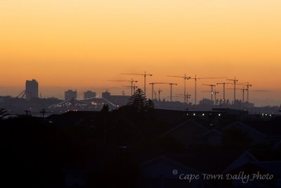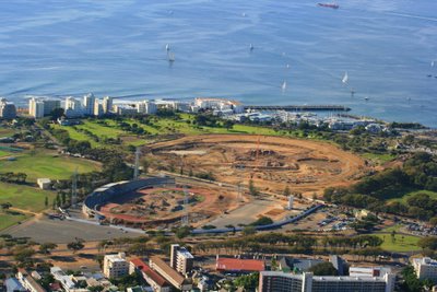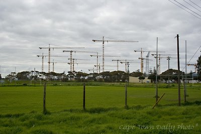 The Green Point soccer stadium, seen here from the Cape Town Waterfront area, looks to be fast approaching completion. There are still tall cranes looming over the empty stadium, but far fewer than you may recall in photos that I posted in 2007 and 2008. Just take a look at the progress made since June 2007!