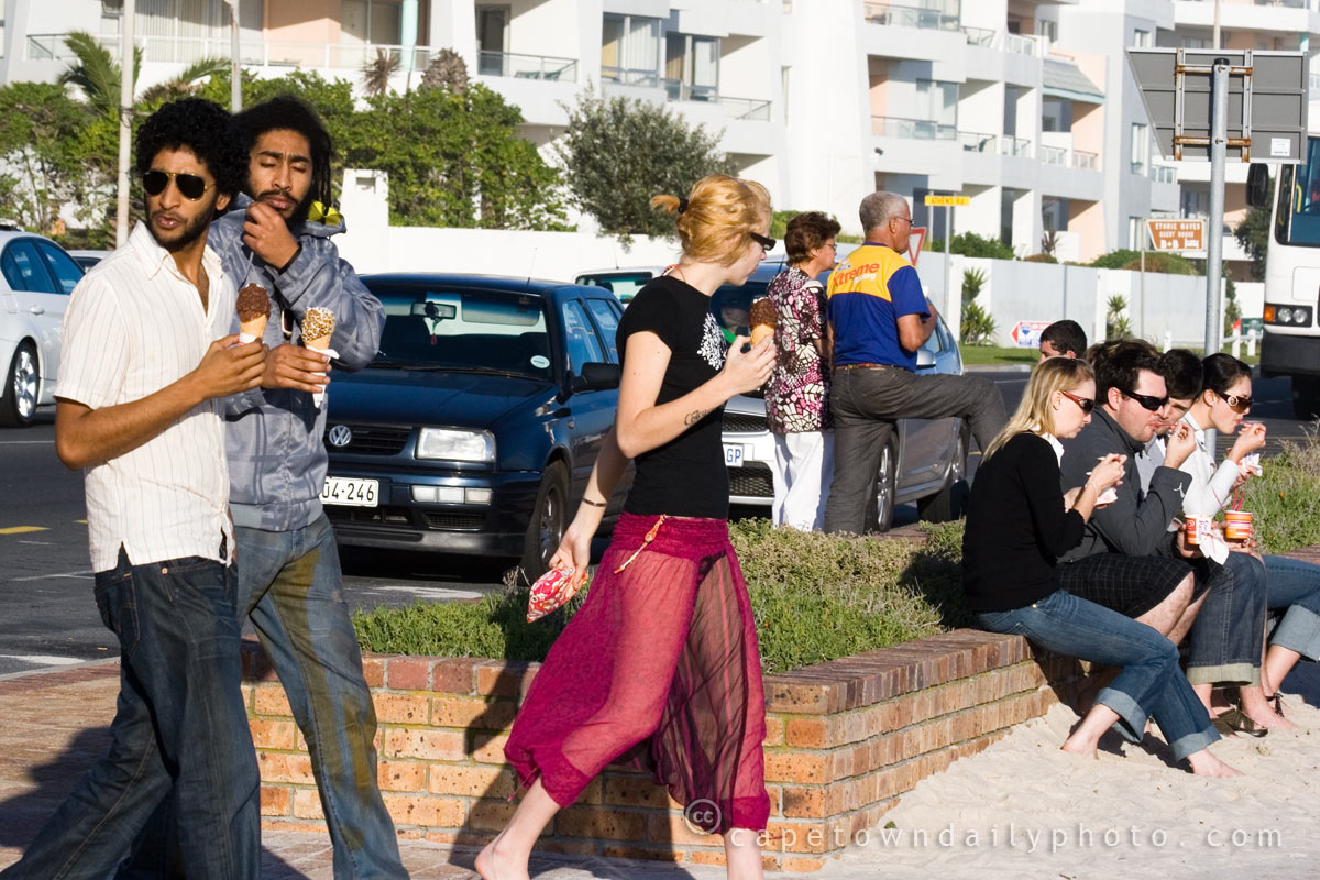 We took a drive out to Blouberg beach today to take a few photos and have some ice-cream at the seaside. Clearly similar thoughts about ice-cream at the seaside went through many people's minds. It seemed as though wherever I looked there were people eating ice-cream!
