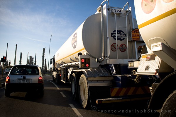 In yesterday's photo I drew attention to one of many pieces of litter littered about in a nearby field. Today our photo focuses on a different, and possibly more damaging, form of environmental damage. Yes, you have it, fossil fuels. This fuel tanker was headed for the Caltex oil refinery in Milnerton where it was presumably to pick up a consignment of diesel or petrol.