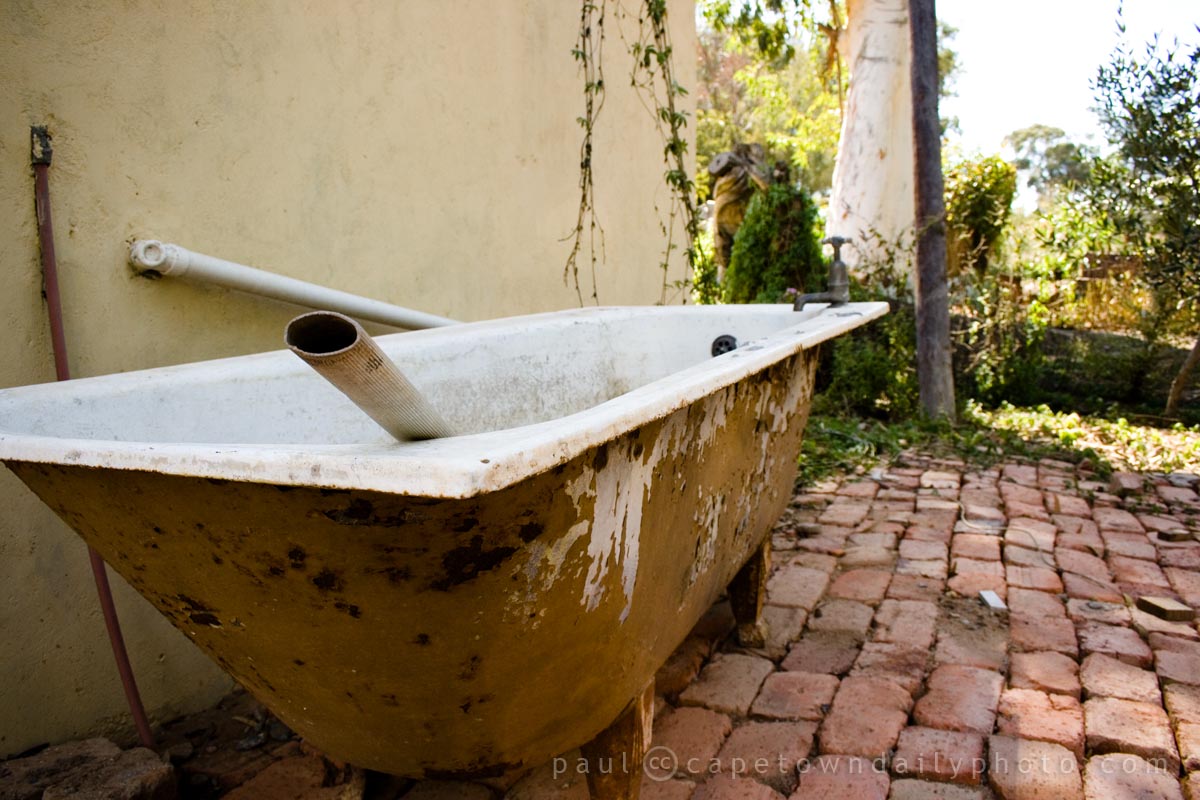 I discovered this bath outside a small guest cottage in the back of Durbanville. This is Africa, so it's of course normal for us to bath outside - not! :)
