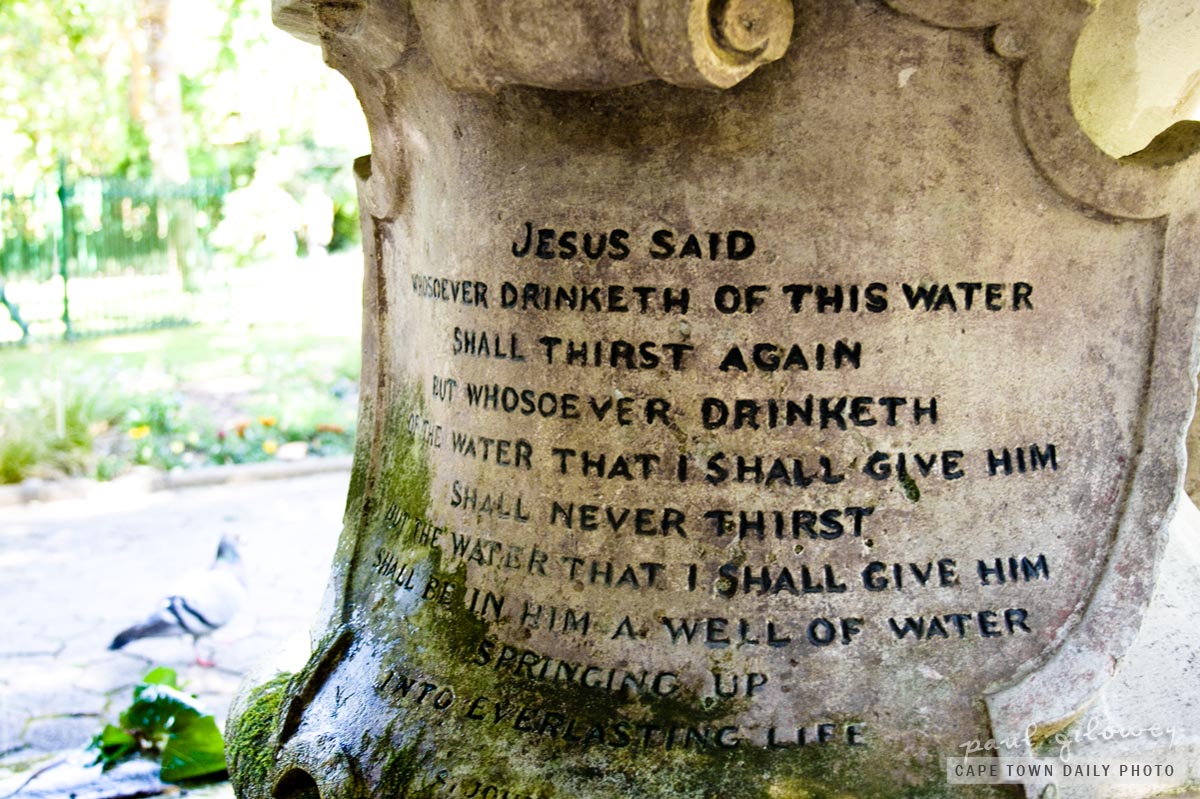 I always find these small fountains to be a reminder of the origin of the Cape Town we know today. As you no doubt already know, Cape Town (aka The Cape of Good Hope, aka The Cape of Storms) was once a replenishing station for trading vessels sailing around the bottom of Africa - often between Europe and India.