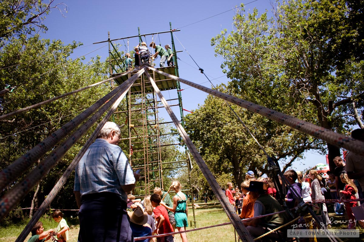 The Scouts had build the structure in this photo to provide a high-point for a zip-line. If you look carefully, you'll see a growing queue of kids waiting to get dressed in a harness and climb the ladder to the top. I watched for a while as the most responsible of the Scouts, manning the top of the structure, carefully attached each kid's harness to the structure as they reached the top. He did his job with surprising focus - he reminded me of a friend that had been involved in the High-Angle Rescue team a few years ago. Nicholas always took climbing and safety extremely seriously.
