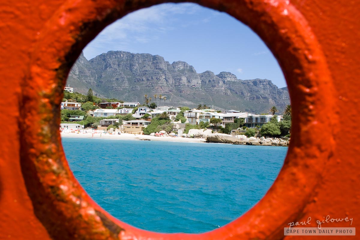 The beach in this photo is a little more tricky than normal to identify because the hole in the hull obscures a lot from view. This said, I'm sure if you've spent some time in Cape Town that it would be unmistakable. Can you identify which it is?