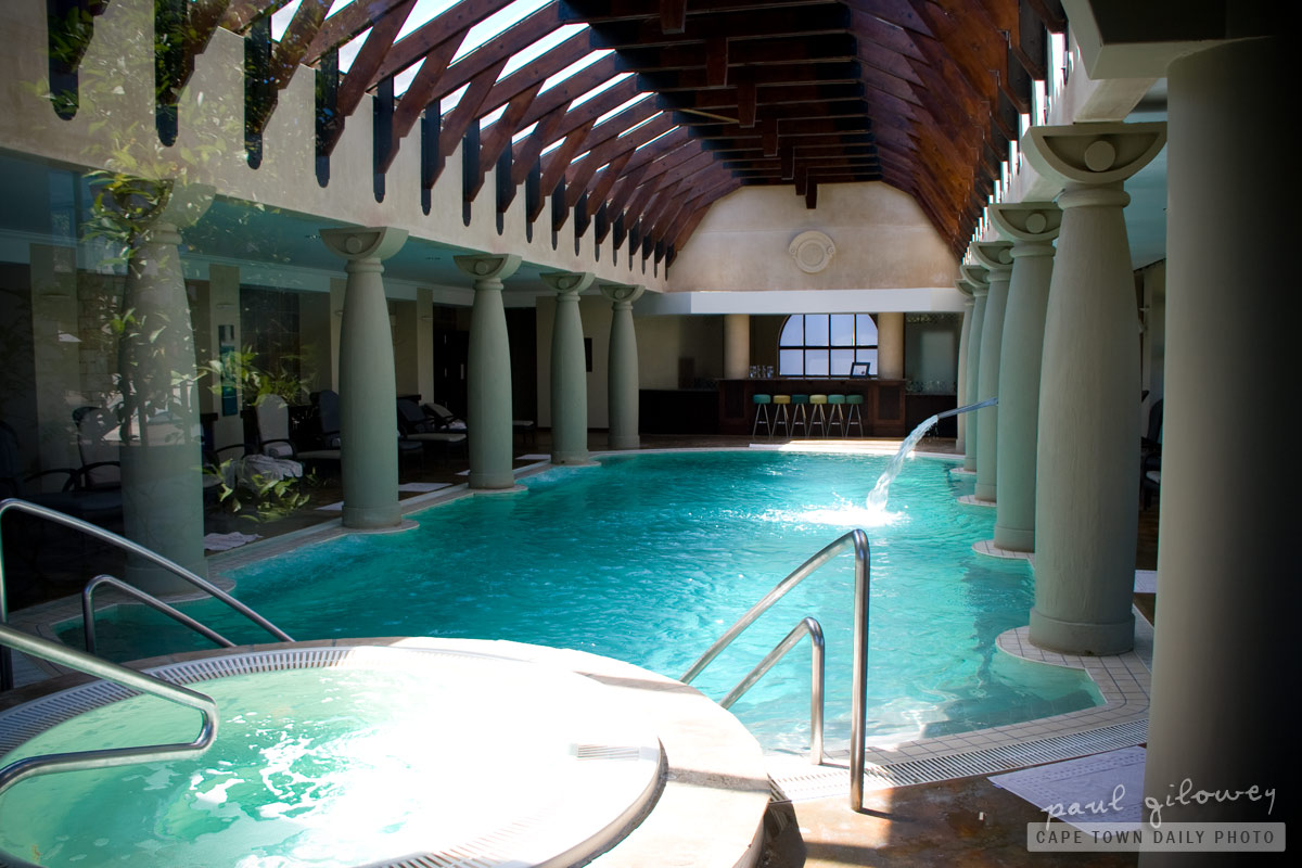 I took this photo through of the spa's indoor swimmingpool - isn't it lovely? Can you imagine spending a few hours in this room, away from the often-persistent-and-annoying Cape wind? Even though the restaurant and the grounds outside left me generally uninspired, there may be merit in visiting the spa to spend a day at the spa... to get away from the busyness and clutter of our lives.