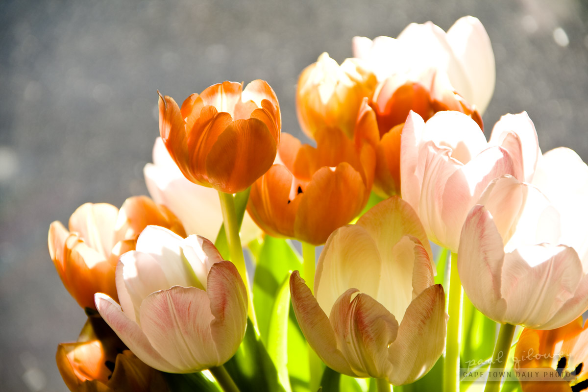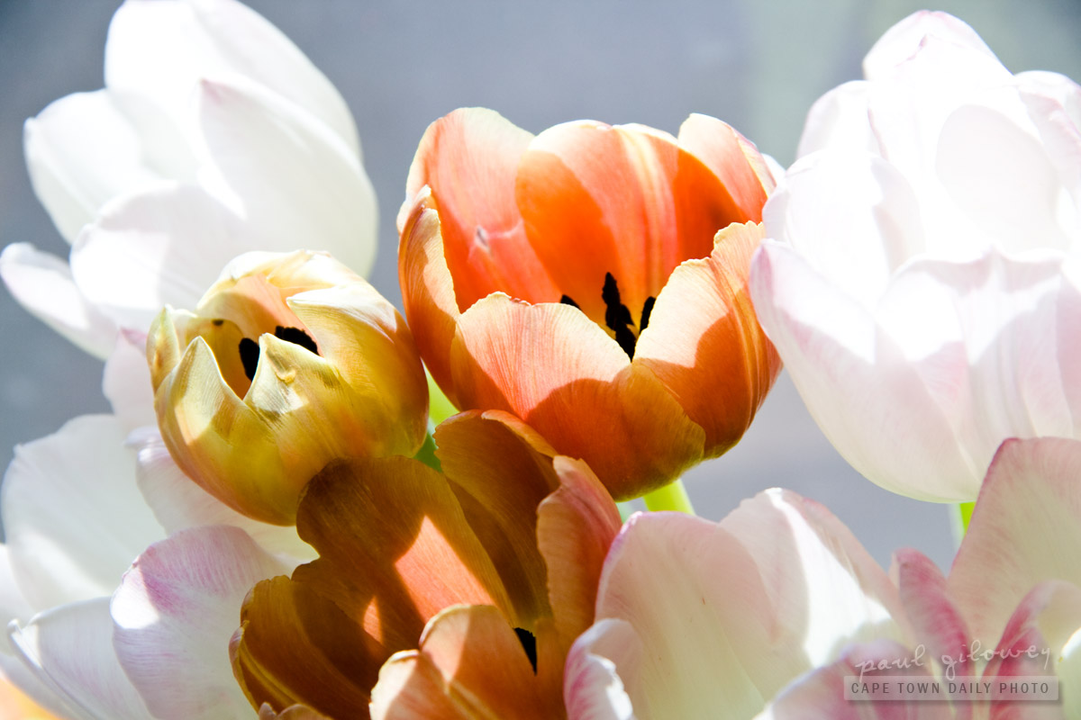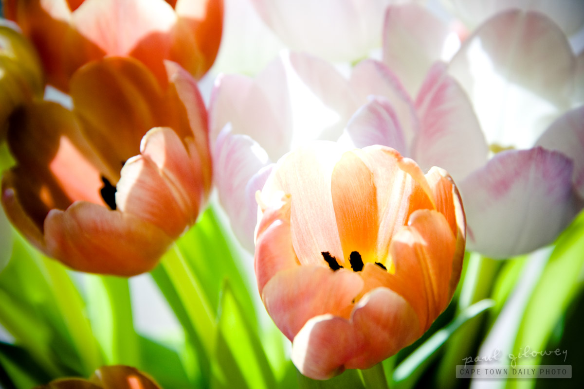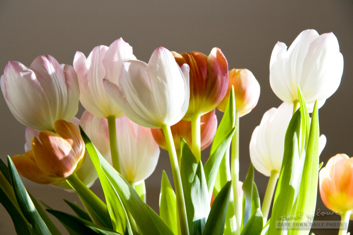 I bought a bunch of Tulips from Woolworths for Kerry-Anne. While photographing them bathed in morning light I realised that taking photos of flowers, perhaps Tulips in particular, is as fulfilling much like photographing beautiful woman - light catches their contours in the most beautiful way.