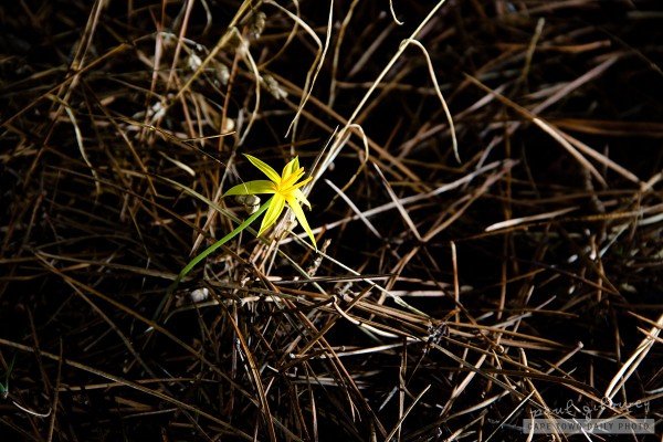Often in life we come across unlikely victories, or turns of fortune, where even though the odds are stacked so greatly against a particular outcome the unlikely scenario prevails - much like this flower springing up from under a thick bed of pine needles, amidst the dark shade of a giant trees.