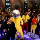 Mirrorball Man loves parties, hates drunk party-spoilers, loves revelers, hates drink drivers, and loves conga-lines! Mirrorball Man and his men-of-yellow have a simple philosophy: don't drink too much alcohol, drink lots of water, and don't freegin' drink and drive - ever.
