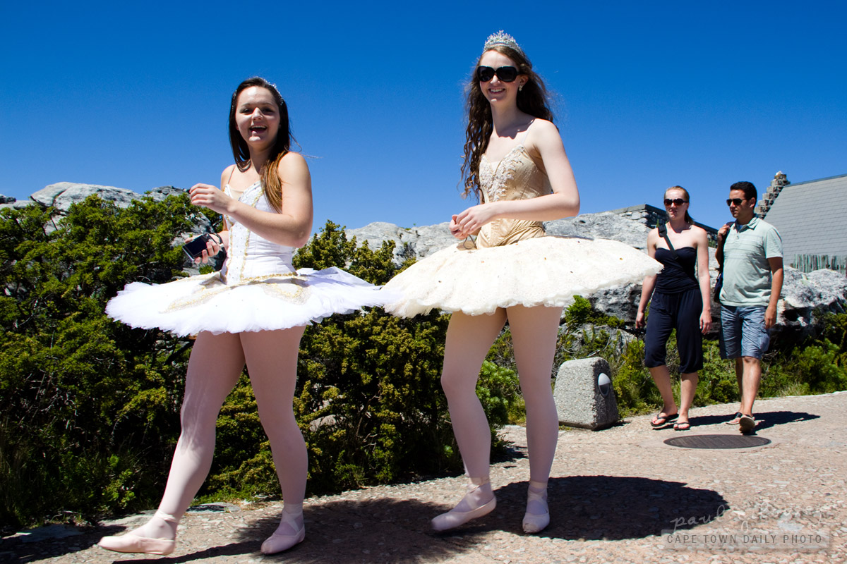 These ballerinas seemed to be in an awful hurry (heading towards the "exit" sign at Table Mountain's upper cable station), so I never had a chance to ask what they'd been doing on the mountain. I pretty sure that they felt a little too much in the limelight and wanted to change out of the tutus as quickly as possible.