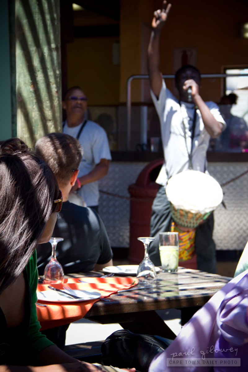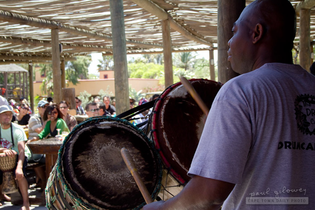 the drum circle runs every Thursday from about 19h00 onwards. You can contact Bevil Spence on 021 854 5369 for more details.