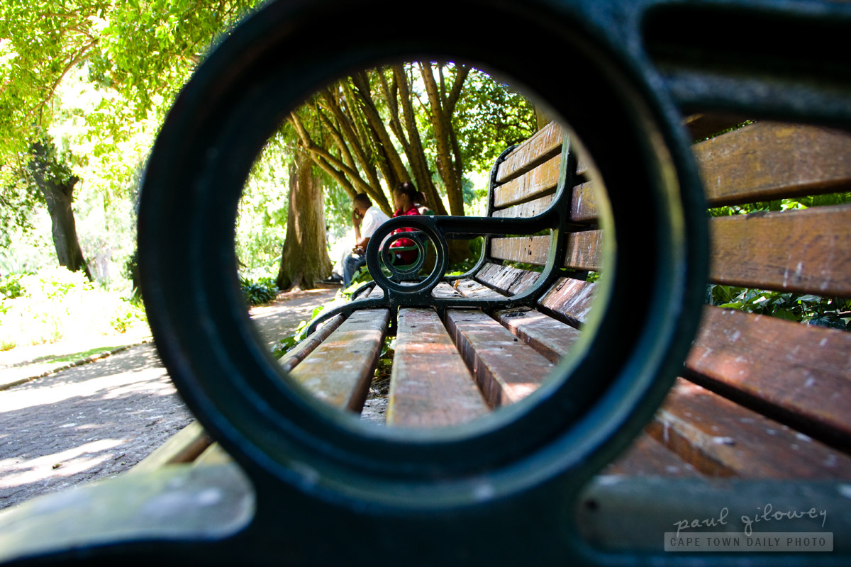 This particular garden bench in the Company's Gardens (map) must be one of the least used benches of them all. Not because it's in an obscure place, not because it's particularly uncomfortable - no, this particular bench is located just below the perfect birdy toilet-spot. The closest half of the bench wasn't so bad, but the second half was absolutely covered in crusty white stuffs. Yuck!