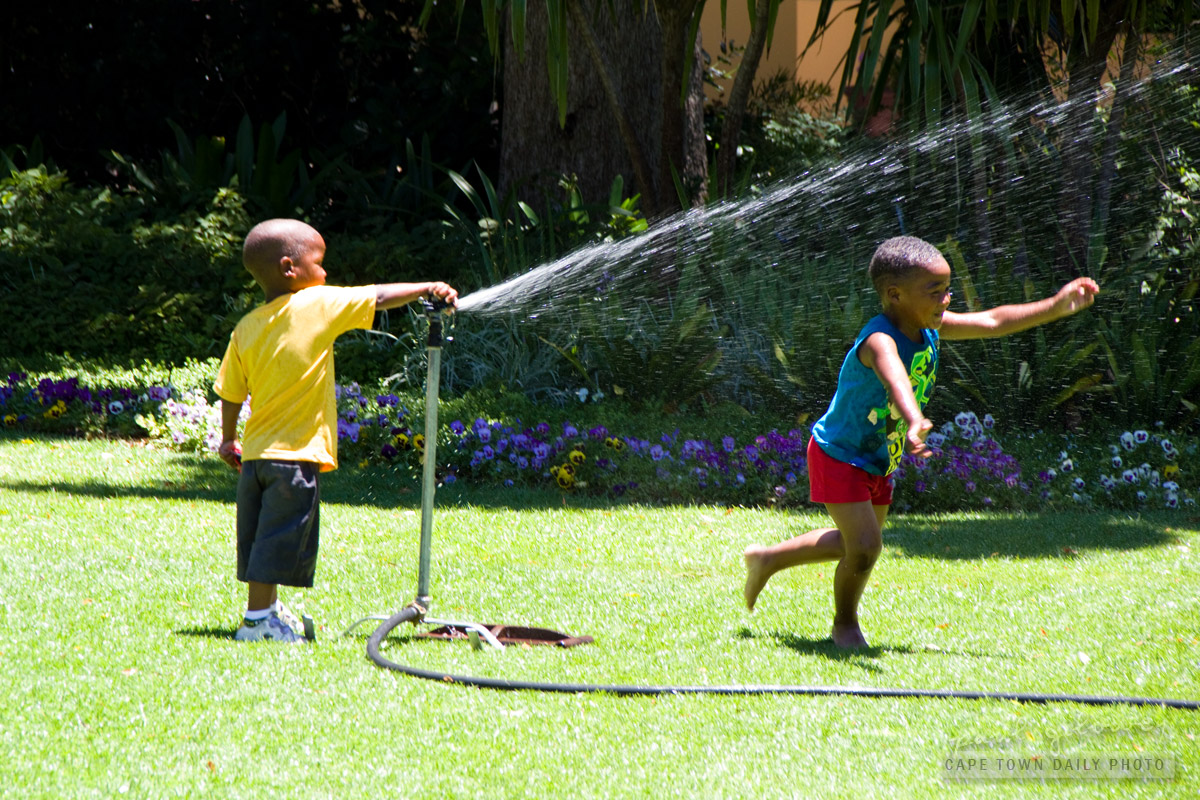 I watched for a few minutes as the little boy used the sprinkler to chase his brother around the lawn at the Company's Gardens while their mother stood watching a little way away with a big grin on her grill. :) Aren't they cute?
