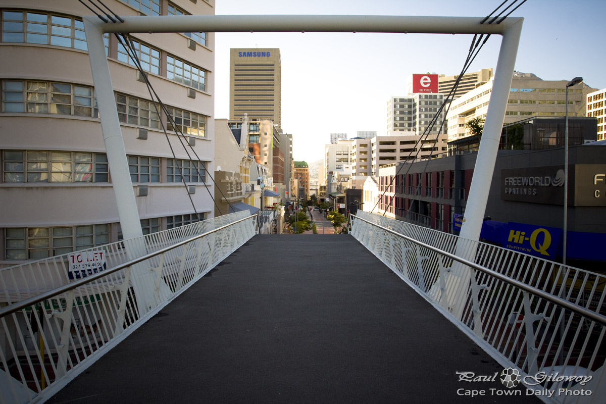 In case the title of this pose is a little obscure - I took the photo on the bridge that crosses the busy Buitengracht street in Cape Town. This bridge was erected on the fan walk that leads from the Cape Town station and bus terminals to the Cape Town Stadium in Green Point.