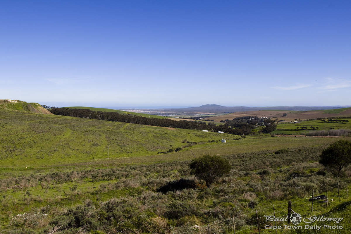 A distant ocean Thursday, 5 September, 2013 • Paul • Leave a reply $links = get_next_prev(); ?> This photo was taken in the direction of Table View, from the top of the Contermanskloof road, outside Durbanville. Way in the distance, where the land meets the sky, that's the ocean and Table Bay.