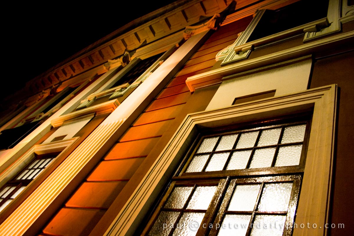 Aren't old buildings just awesome? They tend to have such great lines for vertical close-up photos. I sometimes wonder whether or not in 30 or 40 years we'll have similar thoughts about today's modern structures. Fortunately for us, Cape Town has many buildings just like this one, and it seems that they'll still be around for quite some time. As long as they're still in perfectly good condition there's really no way to justify ripping them down to erect newfangled ones. :)
